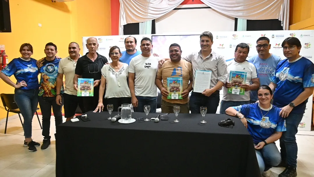 Junto al presidente del Centro Cultural y Recreativo Argentino, el club Social y Deportivo El Fortín y el club Social y Deportivo Unión firmamos el convenio para la realización de los Carnavales 2026 de Machagai
